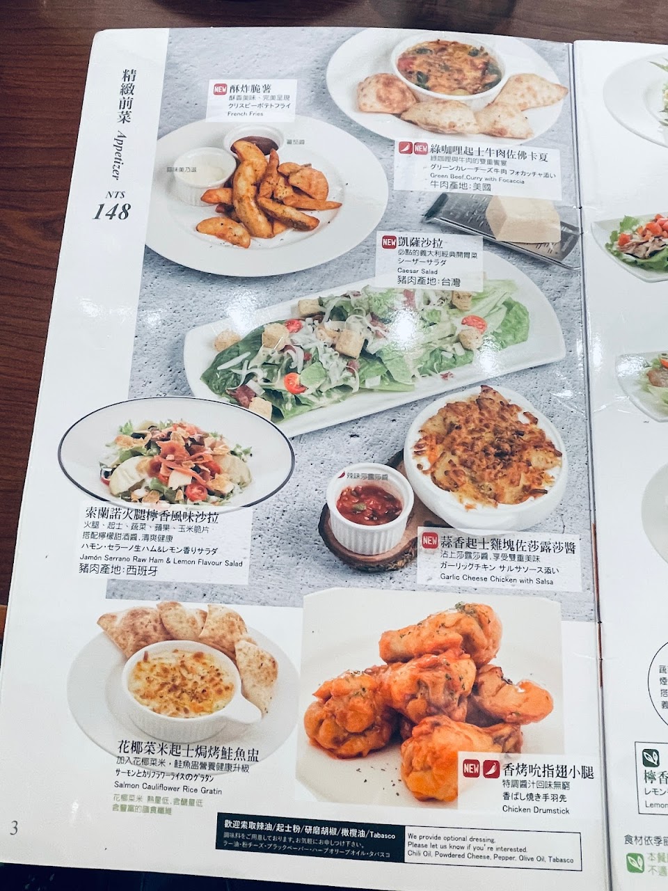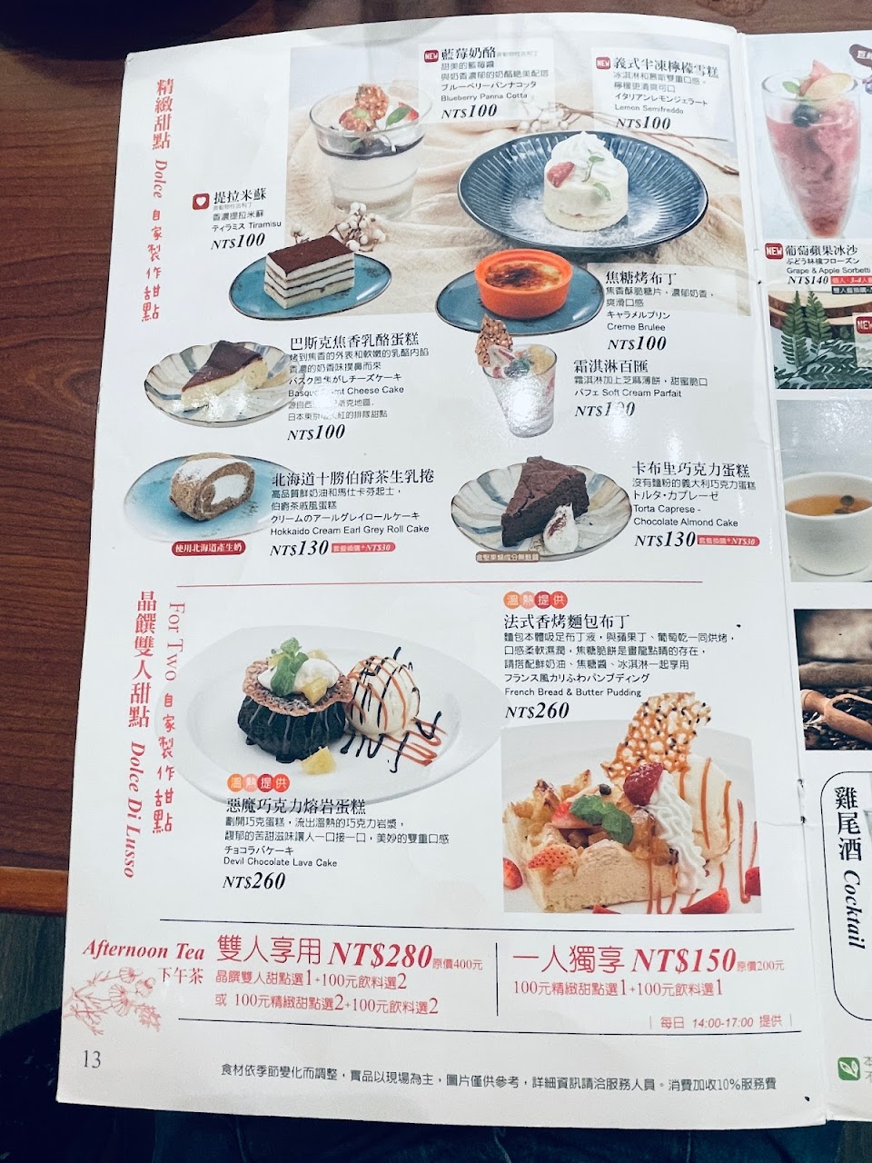 餐點部分: