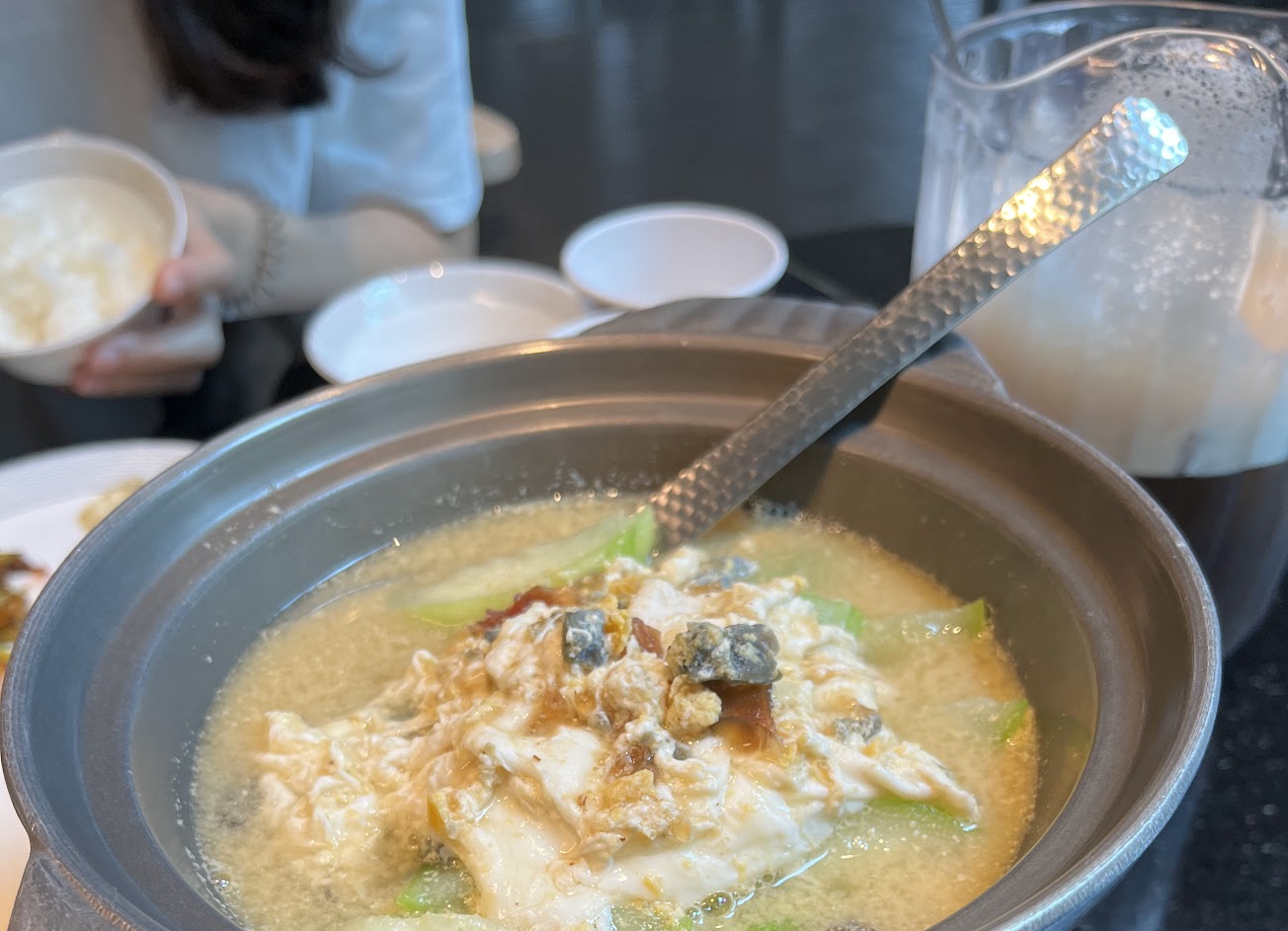 ~麻麻小辣加上配菜的鱸魚口感層次很豐富,前菜皮蛋剁辣椒加上皮蛋苦瓜湯