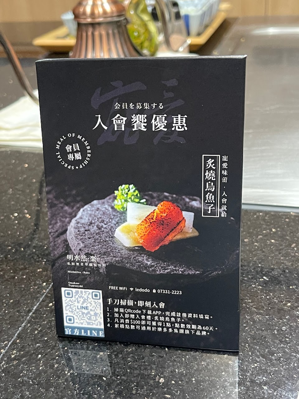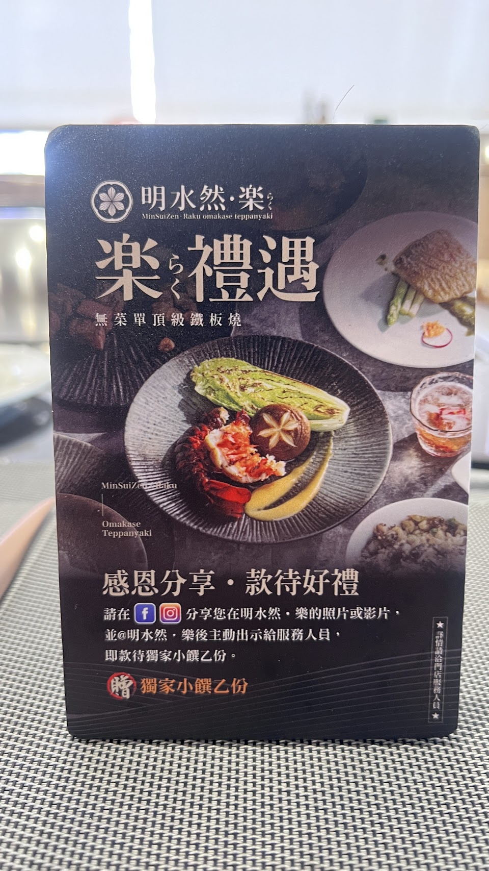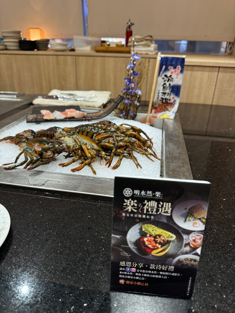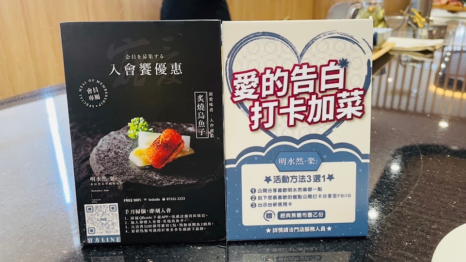 位在新光三越三樓的明水然 樂 無菜單鐵板燒料理,價位分1600元與2400元,2400的價位是限量且需提前預訂。