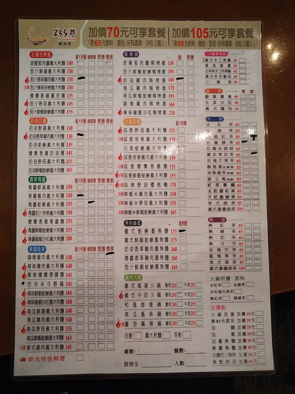 2024最新在地推薦餐廳的菜單_235巷PASTA-新光店的菜單、圖片