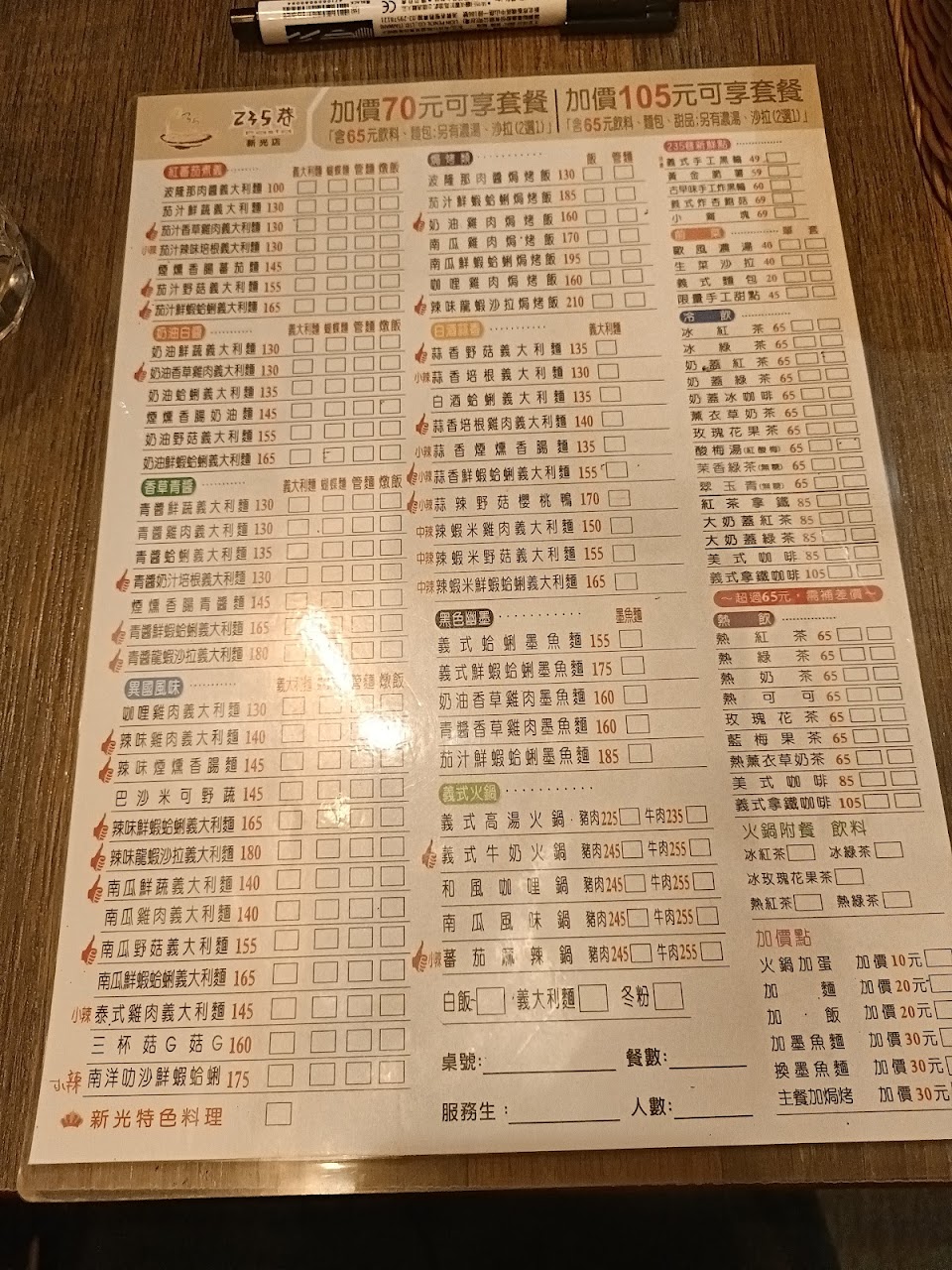 2024最新在地推薦餐廳的菜單_235巷PASTA-新光店的菜單、圖片