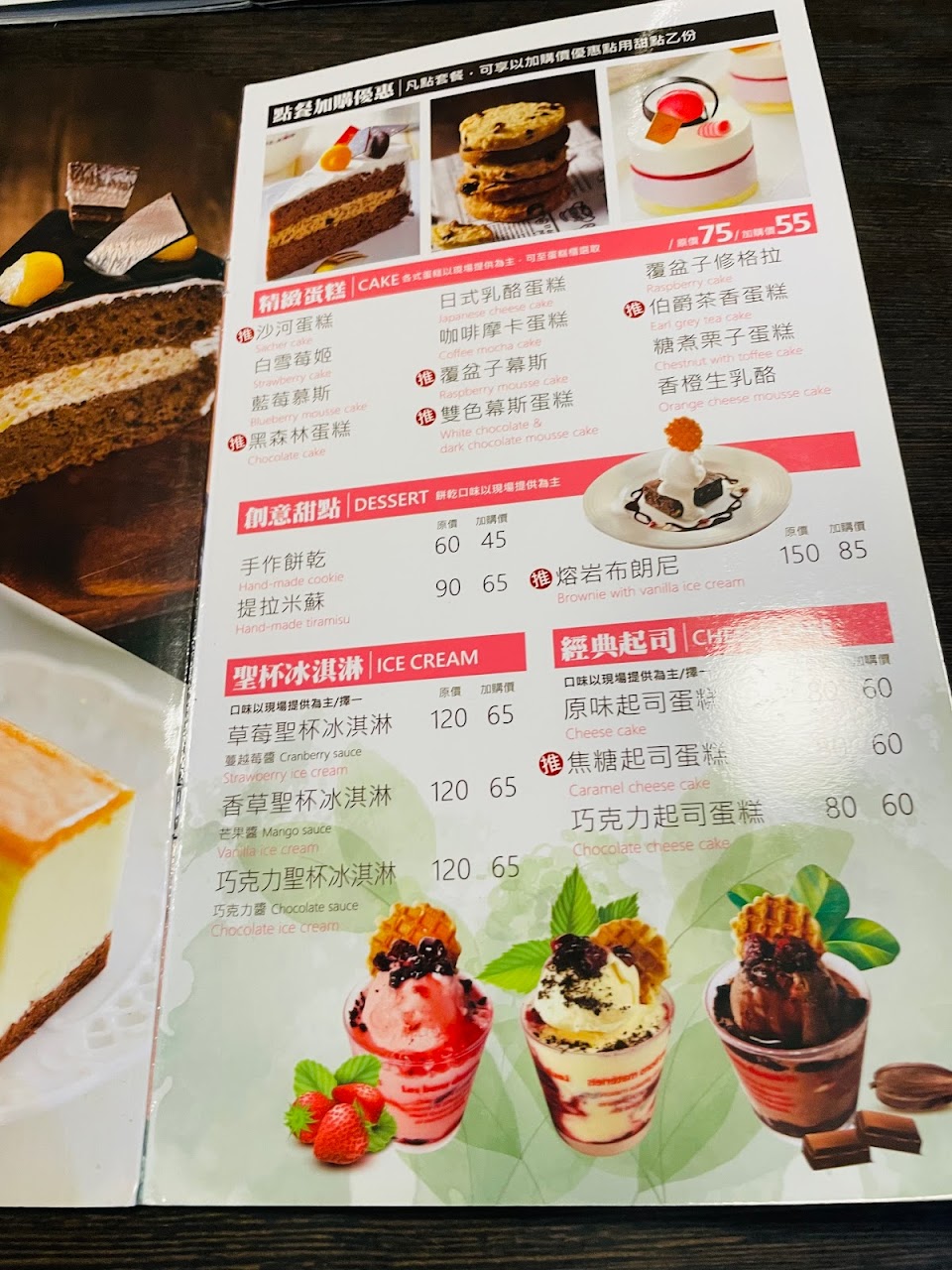 連假又假日真的是到哪裡都是人擠人,朋友邀約到異人館高中店用餐,雖然現場等候的人很多,但服務人員很耐心的幫我們候位後又趕緊進去忙,入座後服務生很耐心的幫我們介紹餐點,餐點好吃飲料也很好喝,重點是甜點吃到飽?