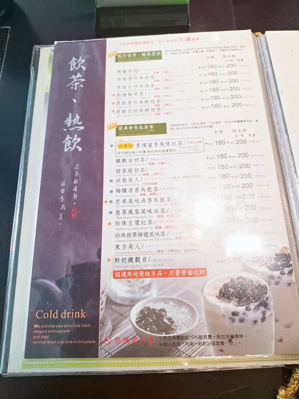 ?雞腿茶麵$360+10%服務費。