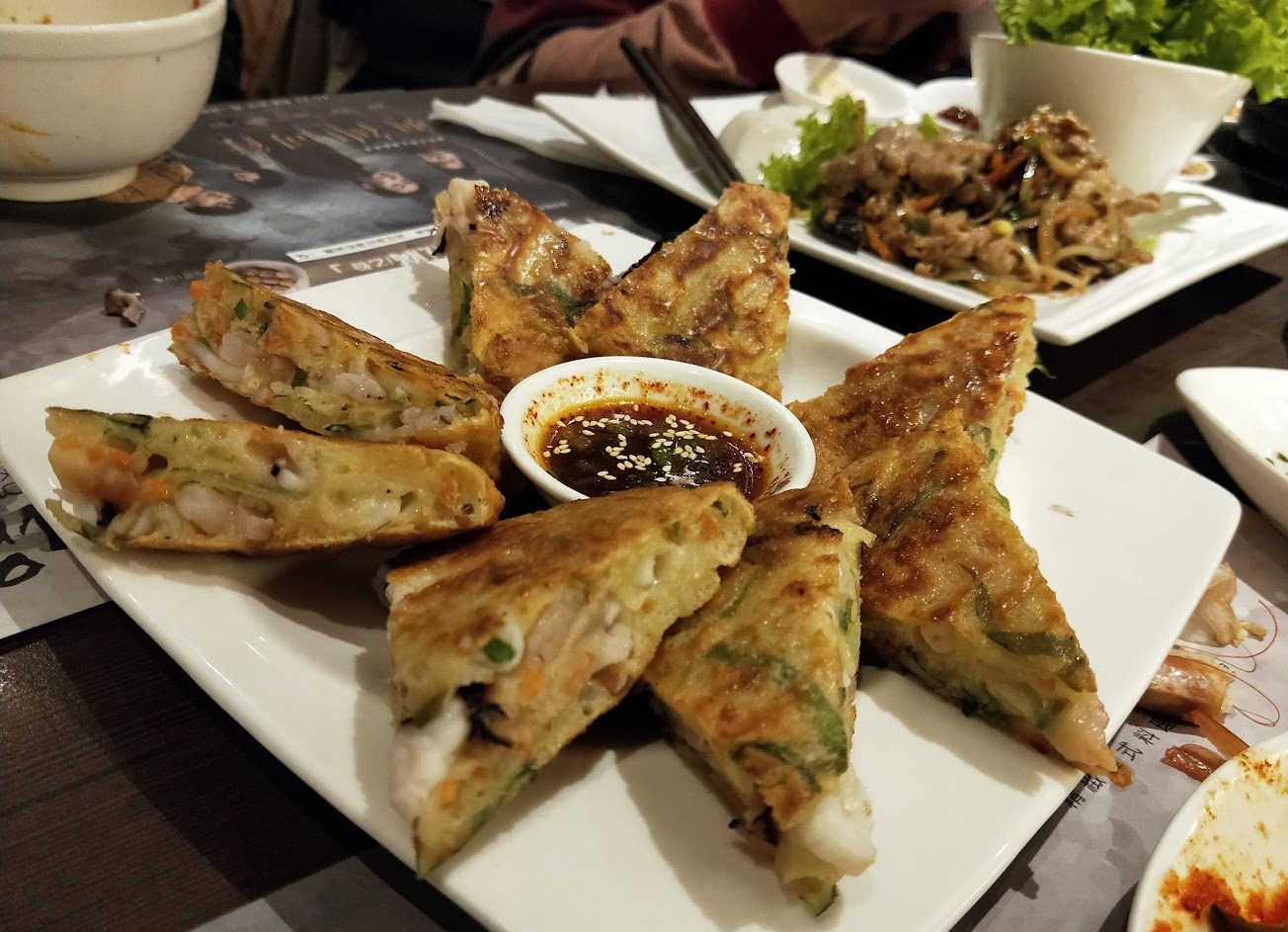厚海鮮煎餅相當美味 石鍋拌飯飯粒有點太黏扒沒幾口