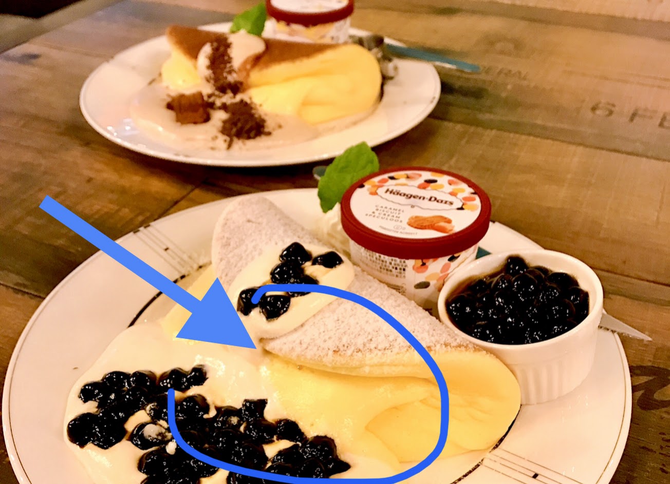 這樣就算了,舒芙蕾鬆餅一半以上都是麵糊,而且生味很重,非常難吃!整盤只有哈根達斯能吃!