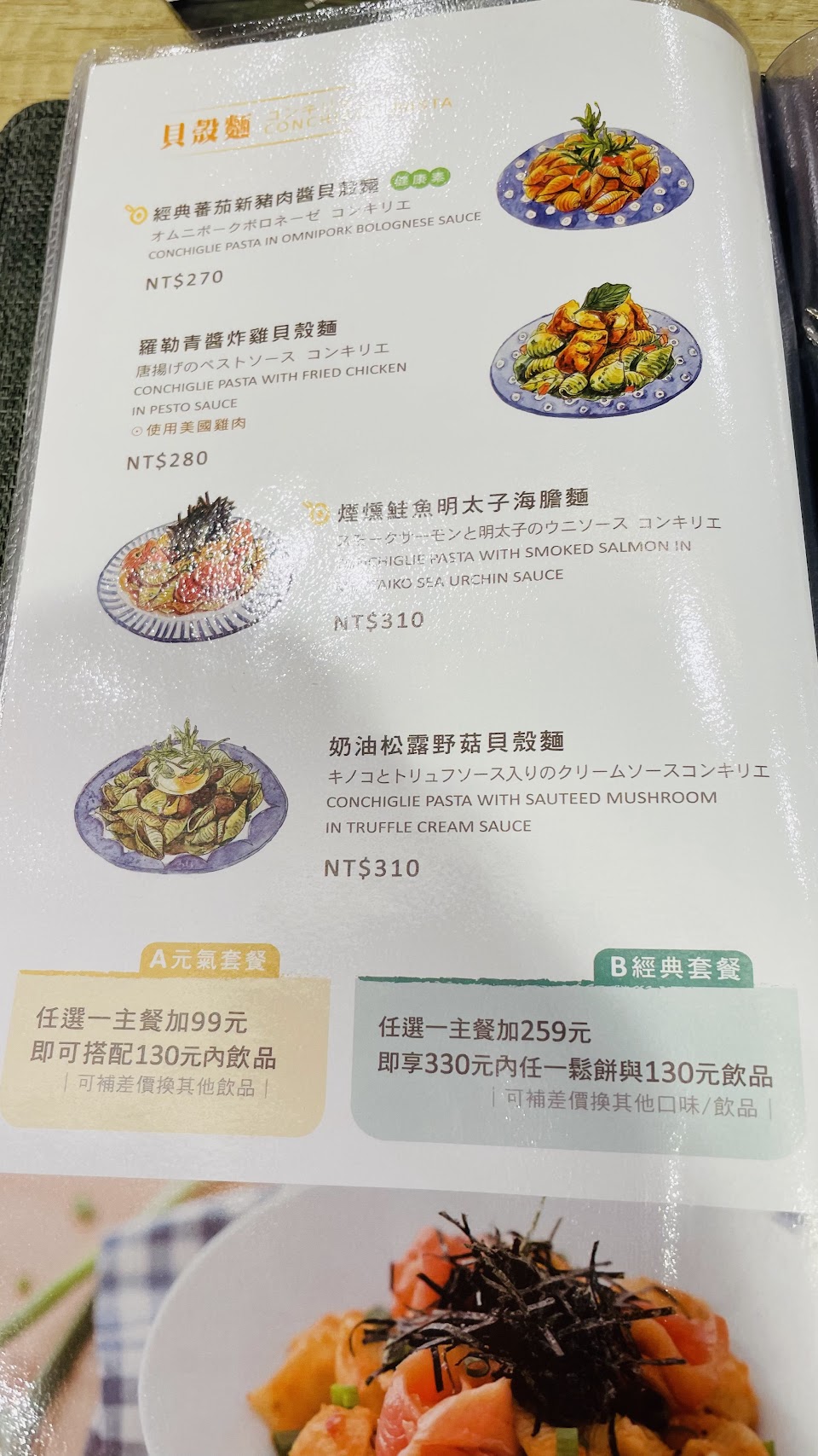 但可惜之前也很喜歡的韓式泡菜貝殼麵消失在菜單上了。?