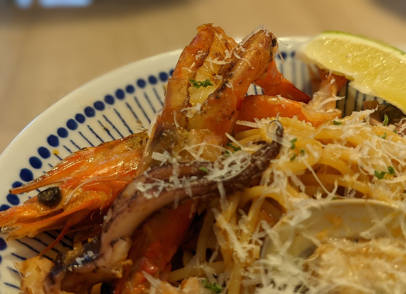 義大利麵口味濃郁、份量也很夠,可惜只有貝殼麵,算滿有特色,但希望能有麵條的選擇。