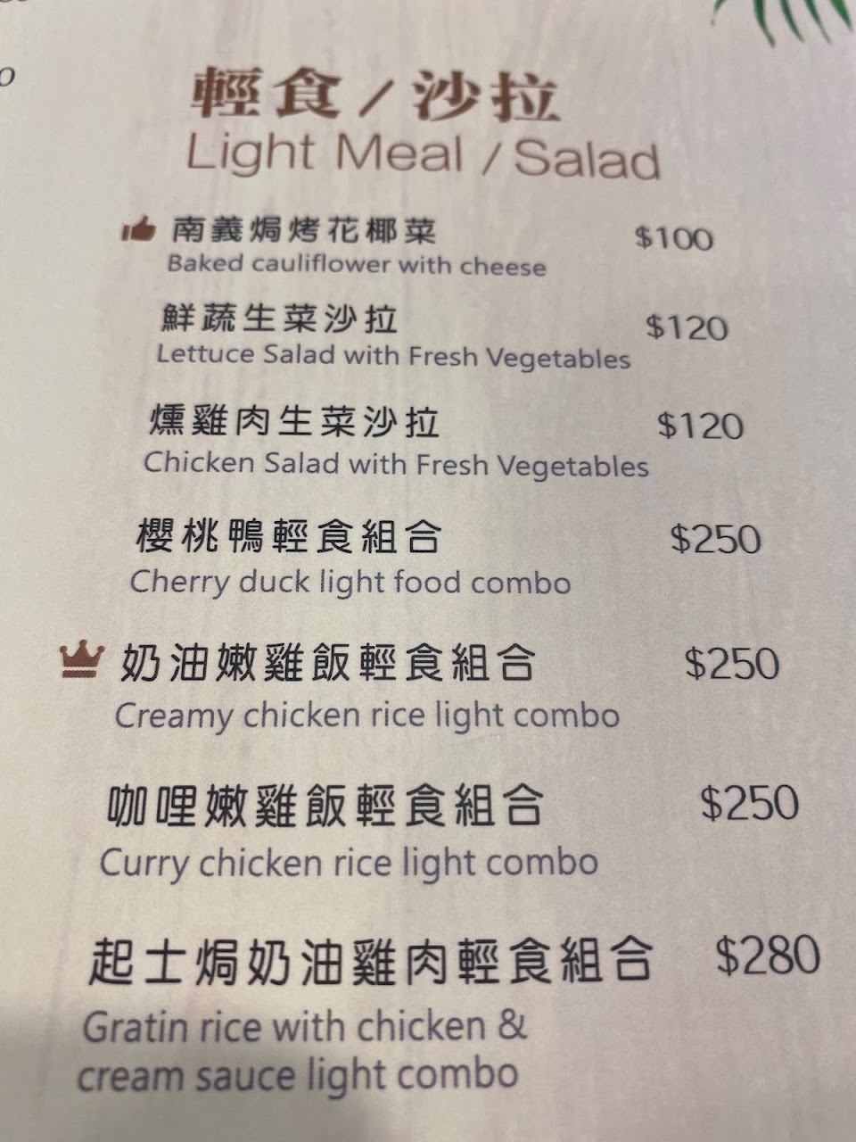 建議的餐點