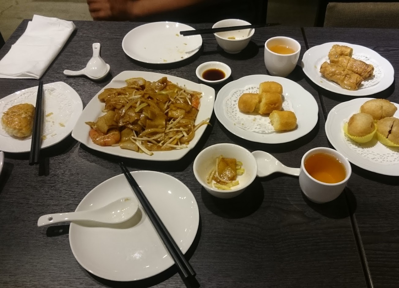 港點都有一定的水準,推港式蘿蔔糕、流沙包、鮮蝦腐皮捲,乾炒牛河略鹹了點。