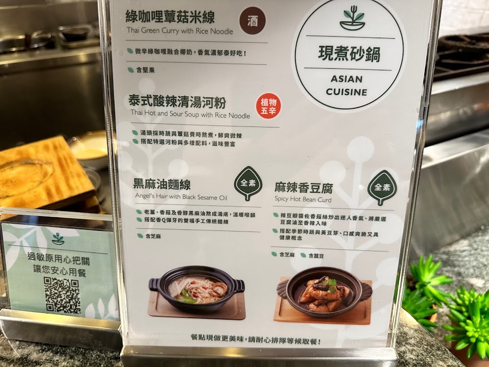 麻辣豆腐鍋, 甜點區, 酥皮濃湯, 沙拉吧, 松露茶碗蒸, 純素甜點