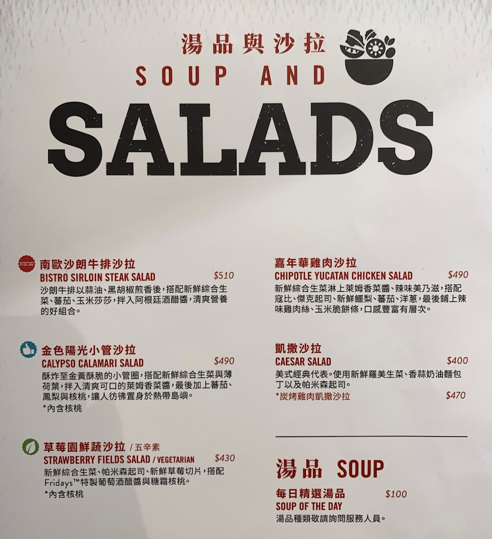 2024最新在地推薦餐廳的菜單_TGI FRIDAYS 星期五美式餐廳 夢時代餐廳的菜單、圖片