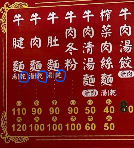 牛肉麵·湯·大碗$100