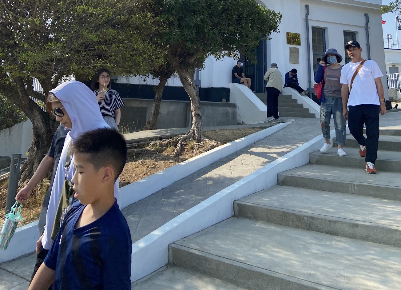 在這兒可以登階梯運動,又可以在燈塔前拍藝術美照,還可俯看巴士海峽與高雄港。