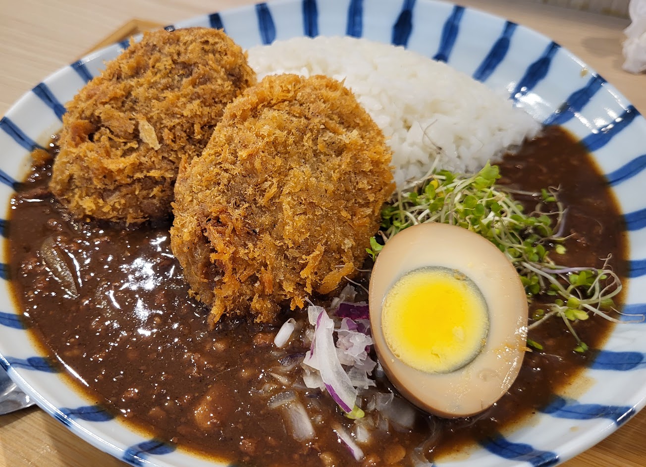 我覺得有一點點小貴,最普通的肉末咖喱要120元,份量有點「精緻」,當天我們點了三份餐,但不知道為什麼我的沒有蛋,然後其他兩份一顆是溏心蛋,一顆是滷蛋(?)