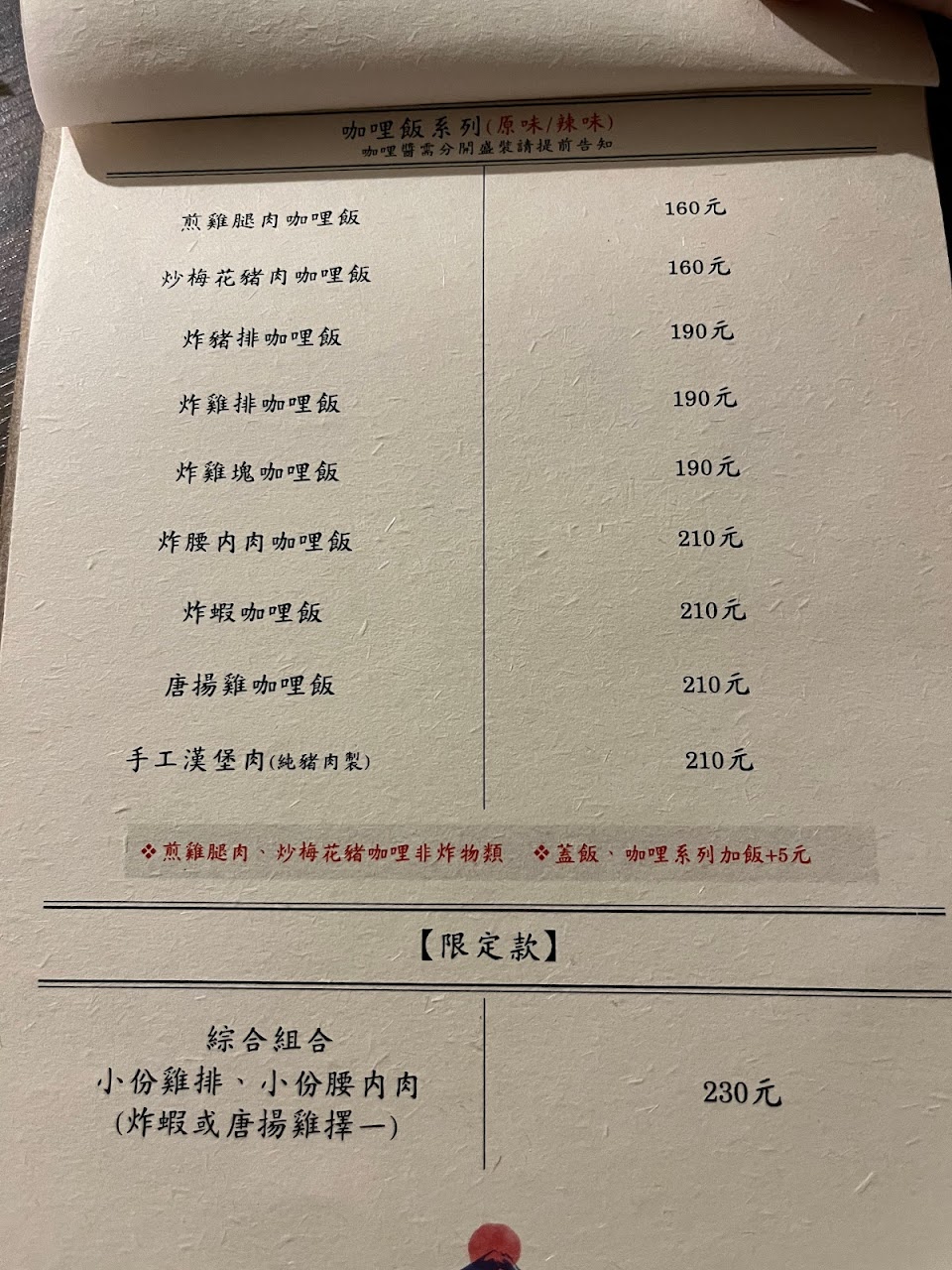 咖哩很日式,口味偏重,很濃郁 腰內豬、豬排跟炸蝦都好吃!尤其是豬排很嫩,但炸蝦不知道為什麼很鹹 餐點部分都很滿意,不過餐點要自取這個部分覺得不方便(這次坐在二樓)