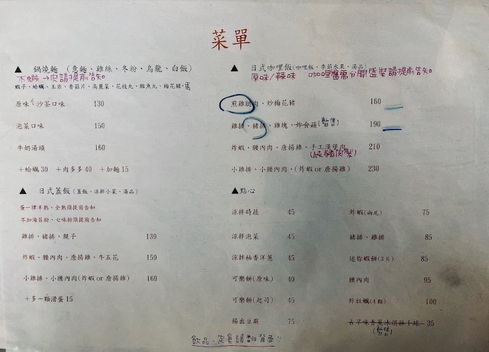 我們點了 鍋燒麵 咖喱雞排 可樂餅 炸蝦? 唐揚豆腐