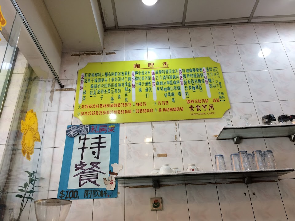 個人非常喜歡的店~~~室內室外都有位置,位置數不算多,店面小小的,已經開非常久了!紅茶很好喝,不會太甜! ↪咖哩飯:咖哩飯配料有紅蘿蔔、豆腐、高麗菜、香菇蒂,味道不是濃郁的印度咖哩,也不是甜甜的日式咖哩,不會辣,口乾很溫和且鹹淡剛好,很值得嘗試的味道,個人非常喜歡! ↪藥膳湯:中藥味不會很重,順口好喝,湯料豐富,有玉米、高麗菜、紅白蘿蔔、香菇蒂,加上白飯就是藥膳飯,喜歡湯飯的人應該會很滿意!