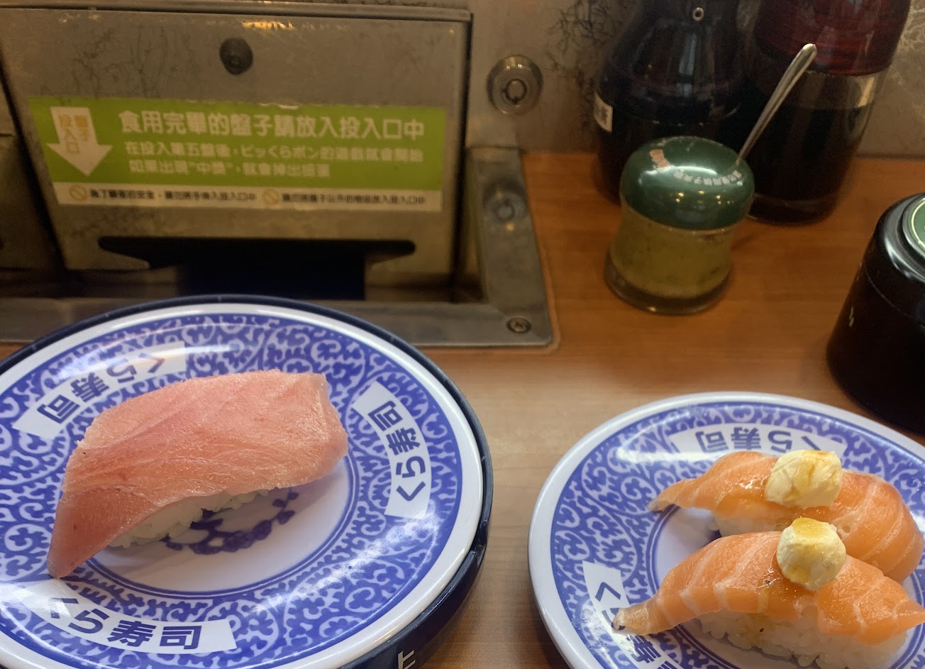 有時候壽司盤都有師傅指紋印,滿噁的。