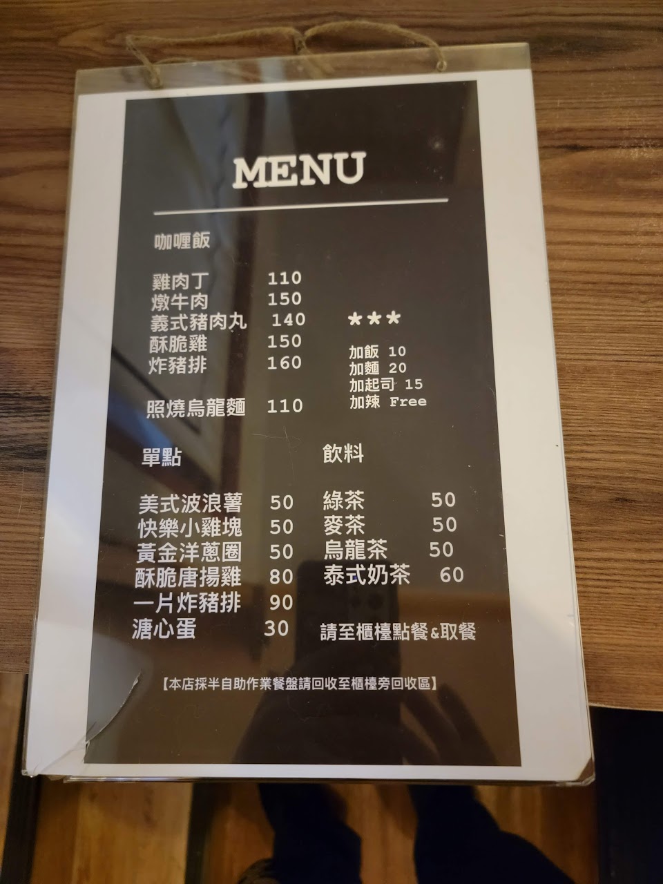 自助式型態,需自己領餐點,用完餐也需自行歸位,自己丟垃圾。