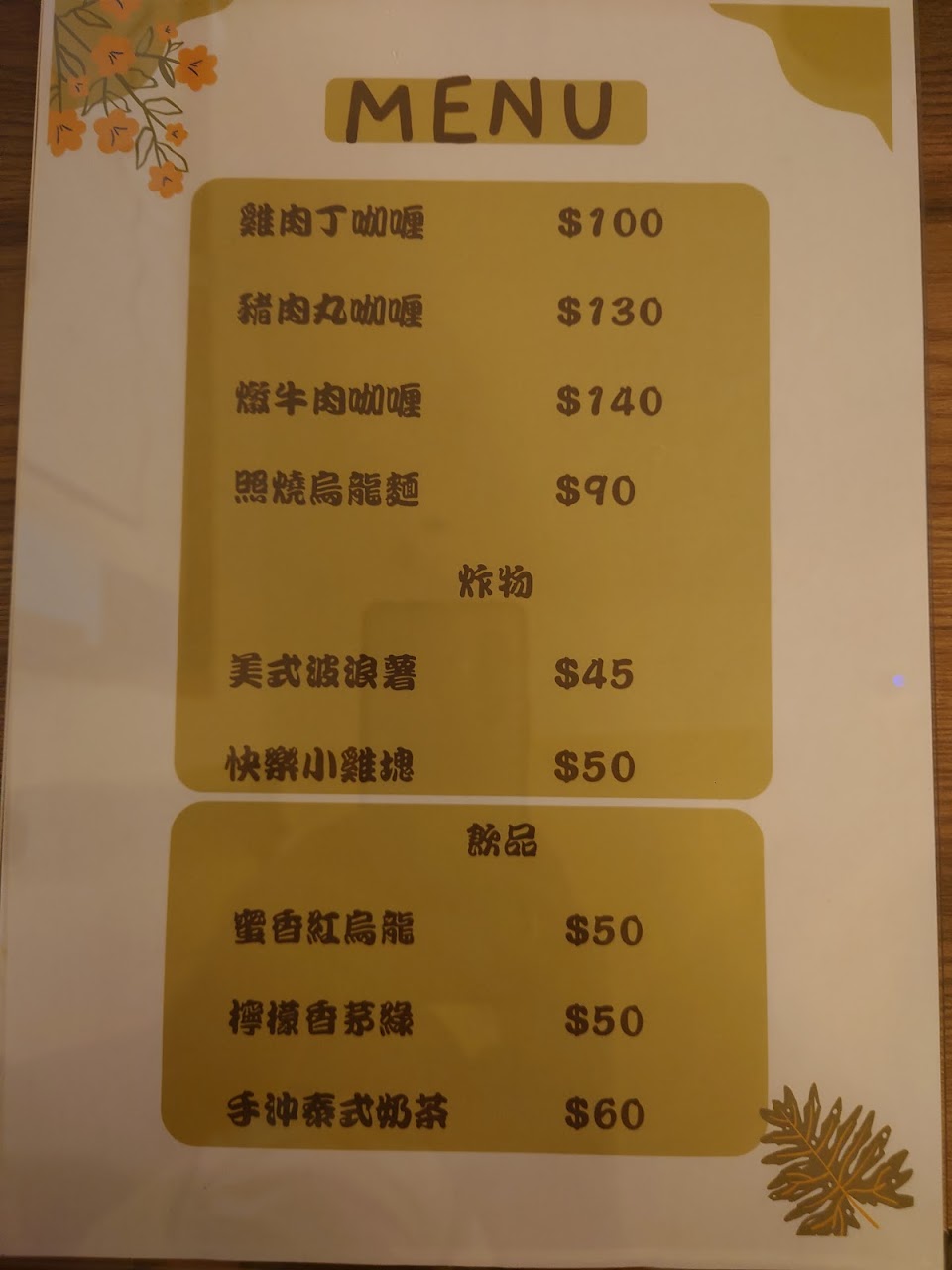 咖哩飯平價好吃,泰奶略甜