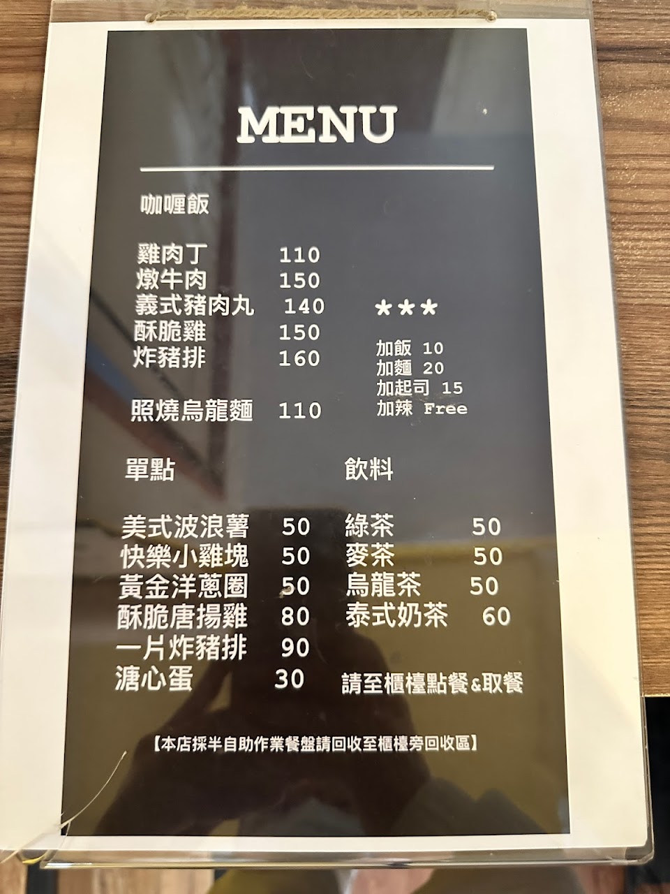 如果你/妳想加飯,請等待你的加飯上餐再吃,因為咖哩醬只能加一次,可能醬吃完了加飯才來,可能會稍微不夠配飯?