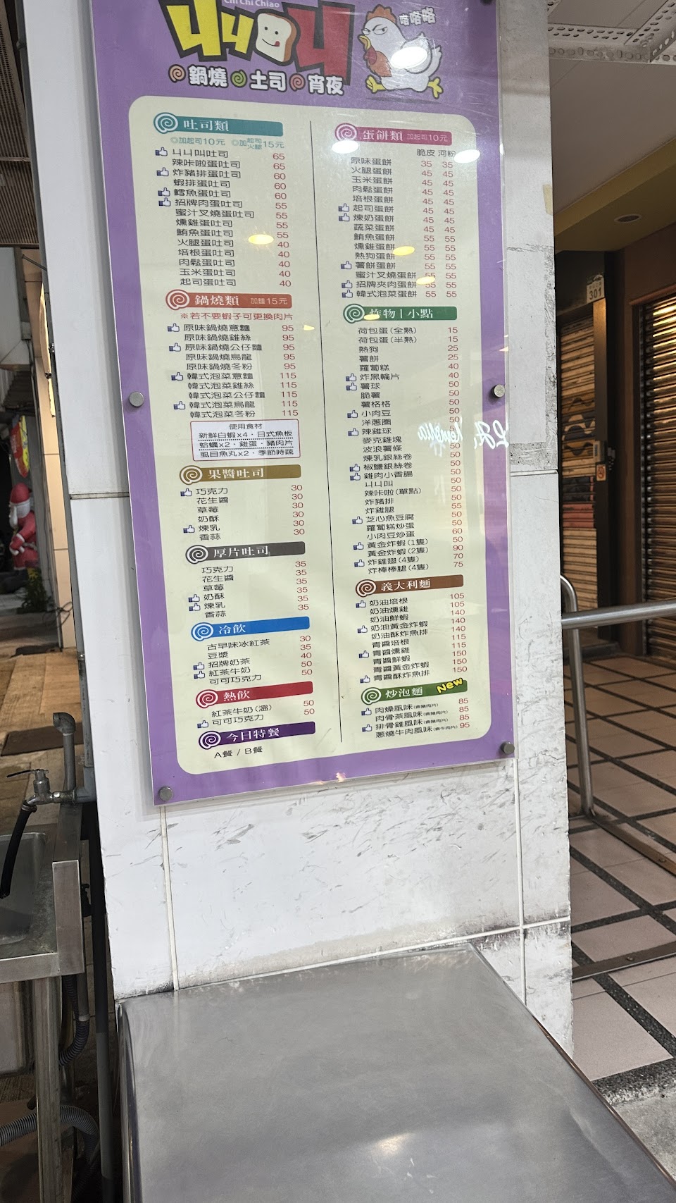 態度沒有很好、叫了招牌ㄐㄐ叫吐司裡頭只有肉跟蛋感覺很空虛沒有任何生菜、鍋燒麵一碗85元沒什麼料(四尾蝦、蛤蜊、鱈魚丸)沒什麼菜,真的是晚上沒有什麼東西可以吃才會去光顧CP值不高。