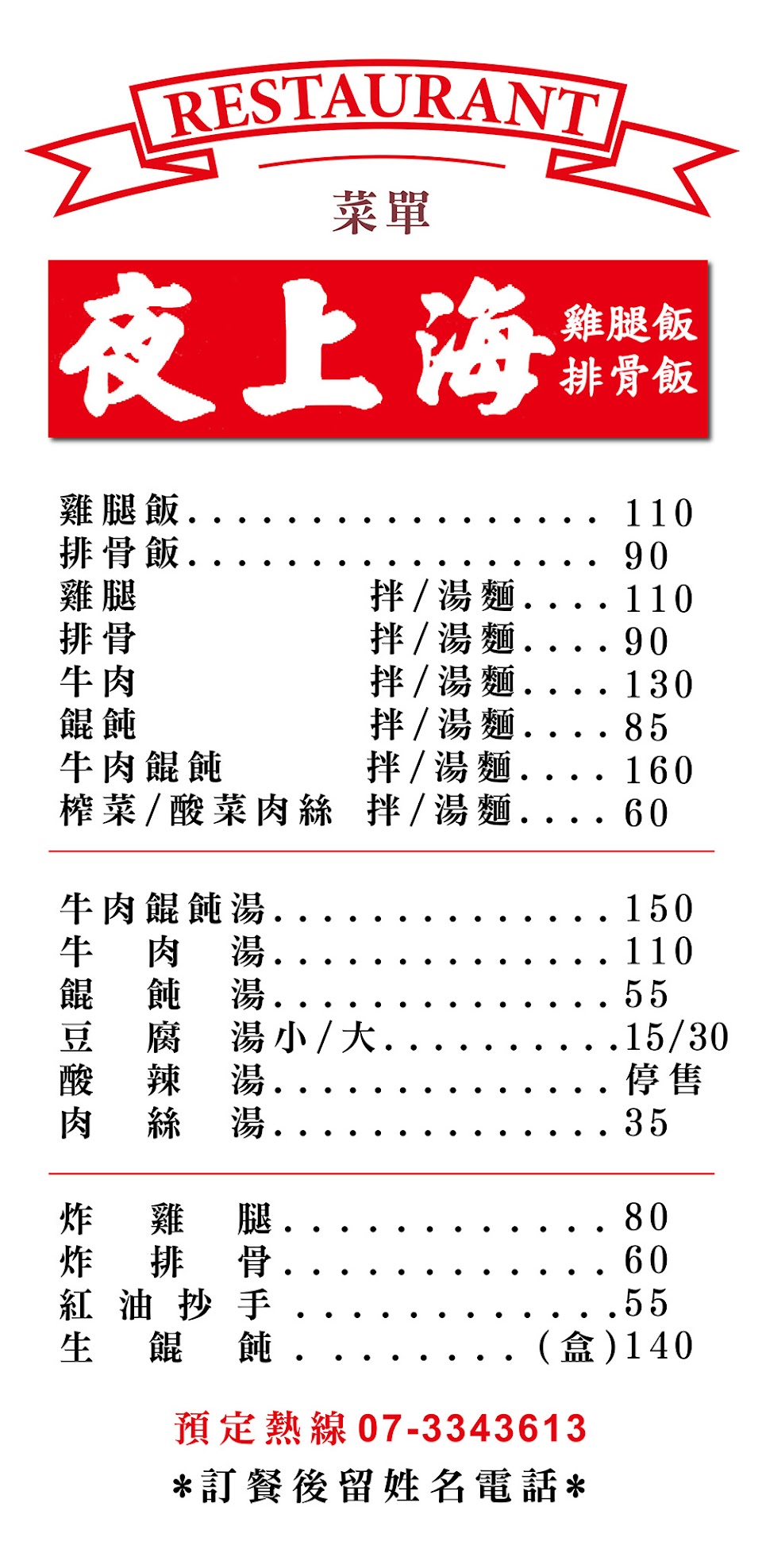 2024最新在地推薦餐廳的菜單_夜上海(排骨飯、雞腿飯)的菜單、圖片