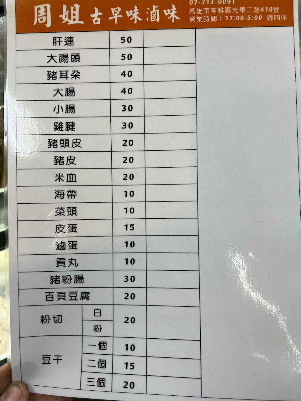 第一次吃,是叫ubereats外送,我有先看評論,雖然很多人說店家會漏餐,我有在備註欄請店家再麻煩留意一下,因為我點的東西比較多;鹽水意麵很好吃,滷味也好吃;尤其是粉切,因為北部真的吃不到粉切,高雄人長大的我非常懷念粉切,吃到的時候覺得很幸福。感謝店家細心的備餐及貼心附上餐具。收到的食物都沒有遺漏。凌晨宵夜叫外送吃到美食很滿足。