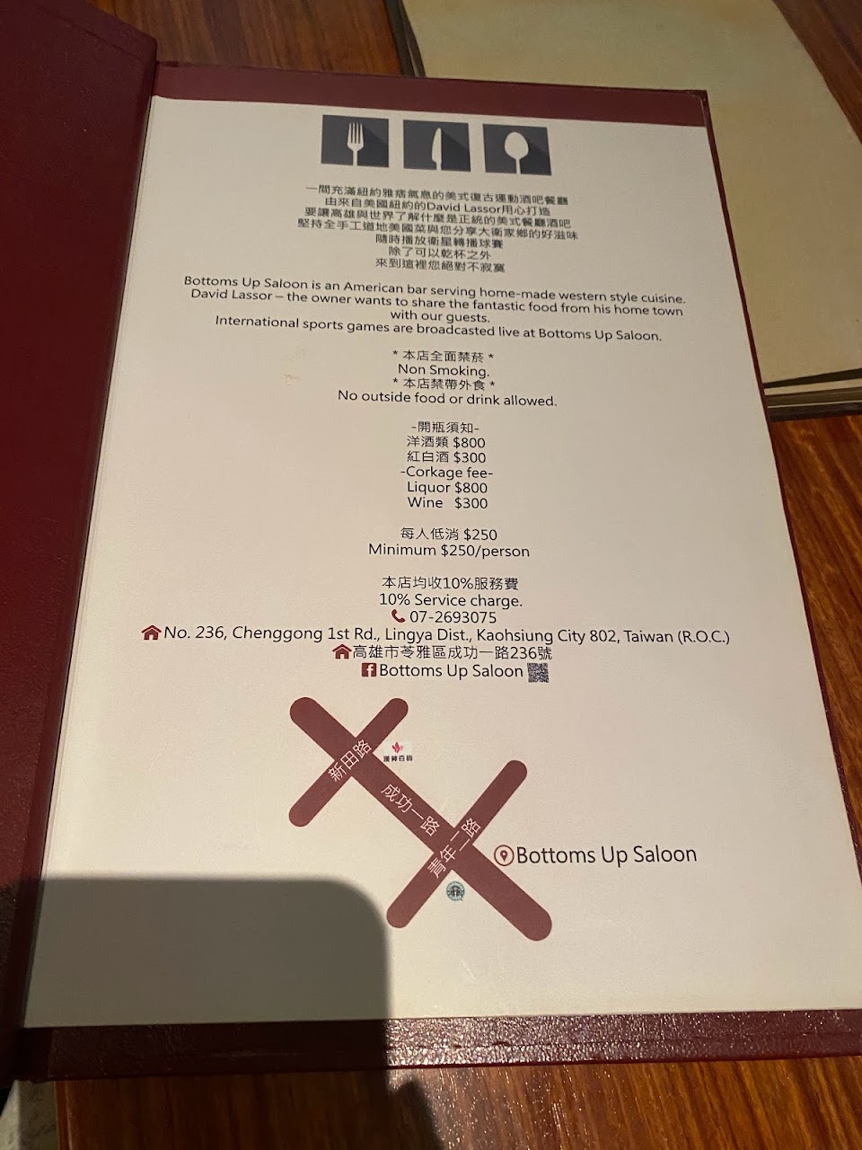 高雄的酒吧氛圍相當不錯。食物很不錯,但菜單多年來沒有改變。再來點西餐就更好了!