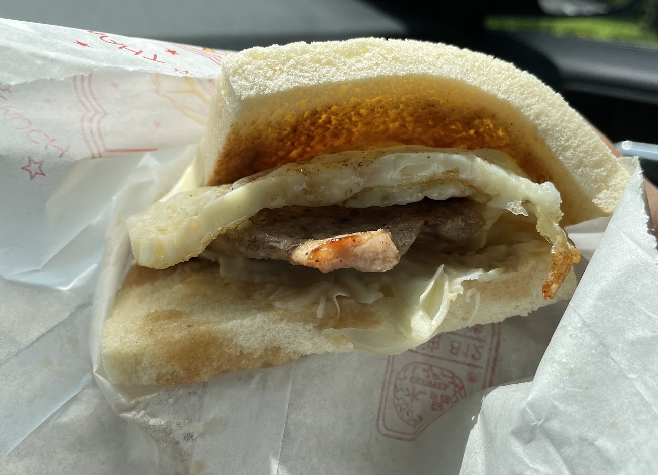 口味多年不變,沒有蔬菜、醬料,單純乳瑪琳及胡椒粉帶出原始風味!可以推薦給不愛濕濕黏黏吐司口感的你/妳!