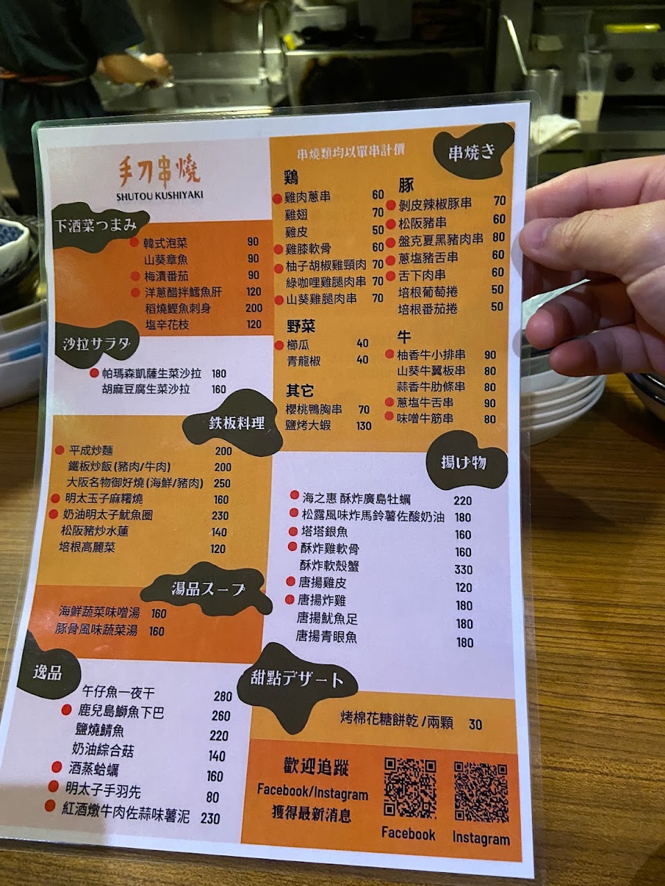 2024最新在地推薦餐廳的菜單_手刀串燒shutou kushiyaki的菜單、圖片