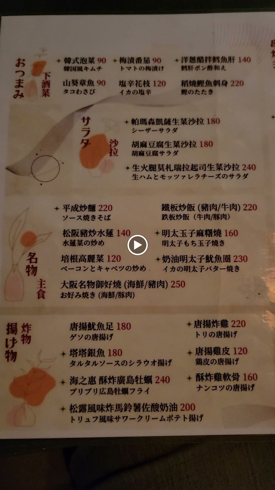 明太子雞肉串 70 蔥鹽豬舌串 70 和牛橫膈膜 120 剝皮辣椒豚串 70, 日式炒麵