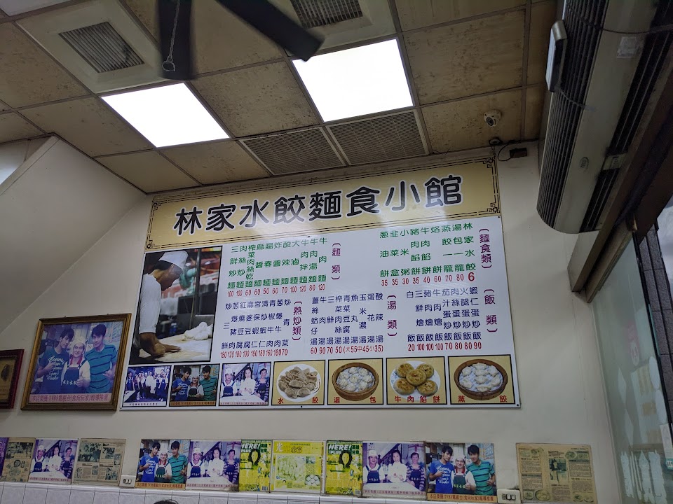 下午時間~光華路上很多店都還沒營業~第一次來吃林家水餃,一入門看到這麼多美食節目跟報導,心裡還算放心~點了牛肉餡餅、湯包、酸辣湯!