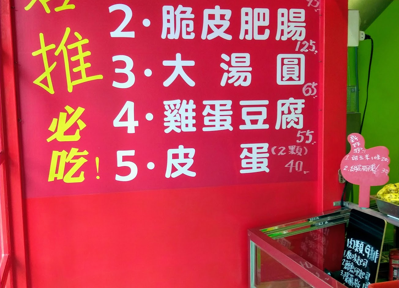 脆皮肥腸,現拿到現吃,也不會脆,購買前還特別交代要炸脆脆的,很明顯不在乎客人的訴求,口味平平,價格貴森森,一次店,點一份肥腸,一份湯圓,二片雞塊,一份雞蛋豆腐(8塊),一份玉米筍(7根),490元,哈哈哈