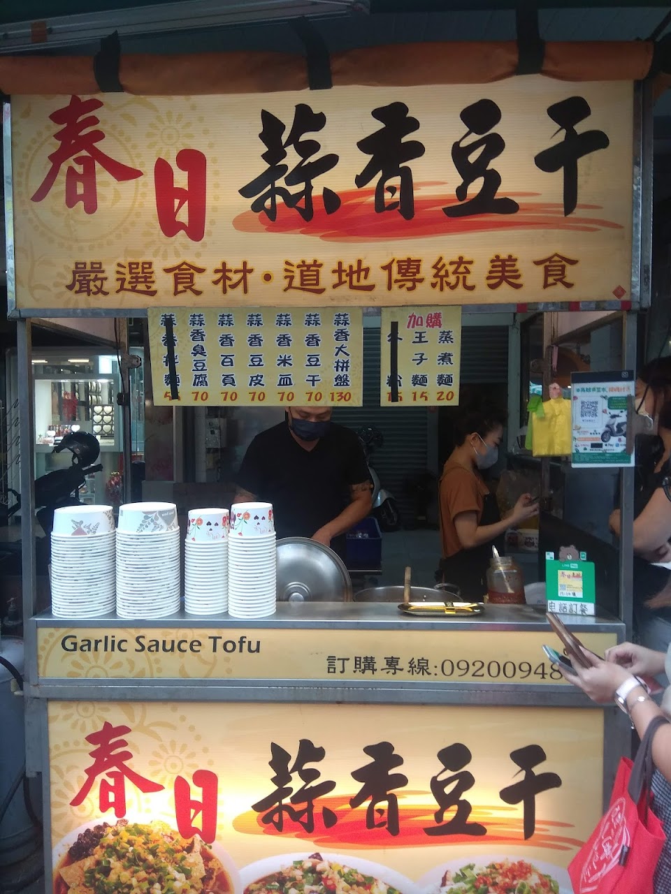 吃過各個夜市的蒜香豆干,每次都被味道吸引而嚐鮮,但每次都覺得怎麼可以聞起來跟吃起來是兩種感覺?♀️一直到第一次吃到春日,愛嚐鮮的我直接點了大拼盤,原因只是因為價錢吸引我,到底這麼便宜是要賺什麼❓果然真的沒讓人失望,吃完發現以銅板價來講,這CP值真的很可以?後來一直很想念這個味道,於是下了班又二訪,輾轉得知原來老闆他們跟外面連鎖不同,難怪吃起來味道可以差這麼多,如果喜歡蒜味豆干的朋友,真的可以嘗試看看這間,他們種類很多,有豆干,豆皮、百頁、米血、臭豆腐,而且老闆他們很貼心,拼盤還可以選擇什麼不要加,或者什麼份量想要多一點,這樣的銅板美食能不推薦嗎❓ 這篇絕對不是業配,應該也看得出來業配沒寫的這麼爛的吧!吃東西是很主觀的,純屬個人口味,單純覺得好吃所以認真想推薦店家,也真心推薦給大家,希望大家有機會經過苓雅市場的人真的不要錯過,銅板價而已,試試也無妨,春日的服務態度跟口味是值得大家嘗試的?