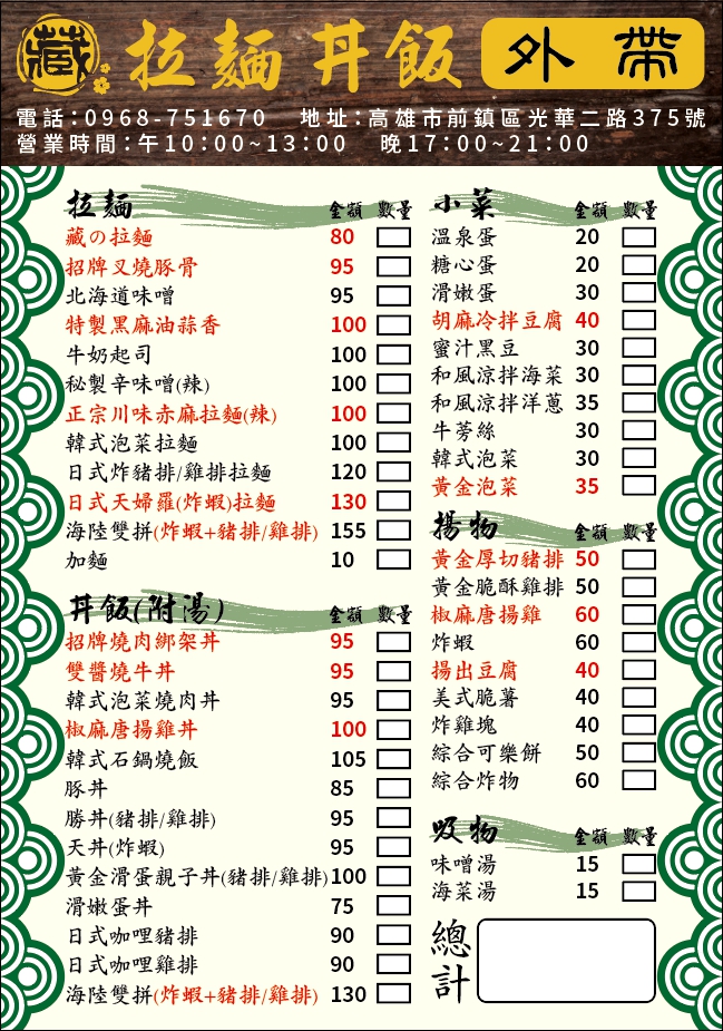 爛到不行,不會煮拉麵就不要灌上拉麵的名字,湯頭0分麵體0分內容物0分,大家叫外送前拜託要去GOOGLE查一下評價,免得點到這種難吃的山寨拉麵