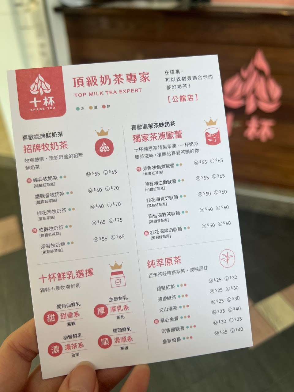 每次晚上在公館吃飯,十杯都人潮滾滾, 好不容易找了一天下午人潮少,買了主恩牧奶茶+杏角, 但是可能是平常喝習慣陳三鼎是全牛奶沒有加茶, 十杯的鮮奶茶就像前面有人評論的一樣就像奶水茶, 感覺像是被水稀釋過的牛奶,茶味也沒有凸顯…有些失望。