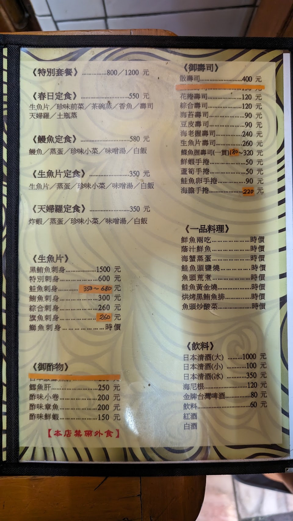 本來是要去武廟路的淺草日式料理 可惜他已停止營業 所以在春日隨便坐坐 料理普普通通_