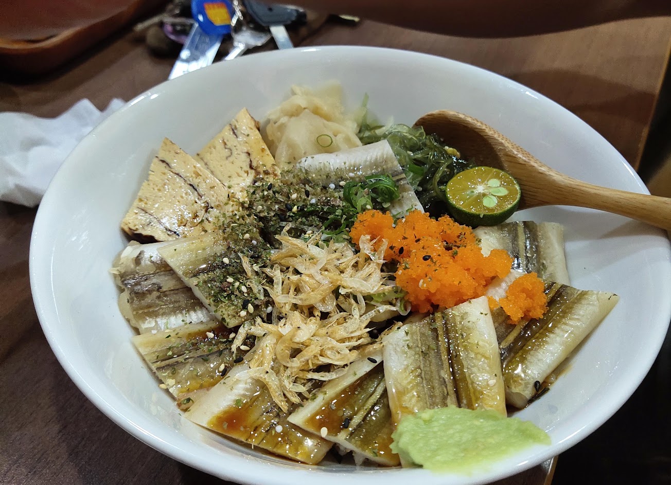 真的很隱密餒~ 好吃鮭魚親子丼 建議 晚上來必須訂位 車位要找附近公園的車格 不然不好停唷 一分錢一分貨 值得來