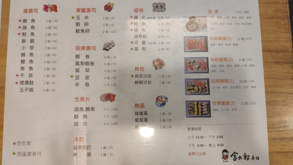帶有台式溫暖服務的老牌壽司,出餐速度快,便宜份量大會飽,家庭式出遊的用餐優先選擇。