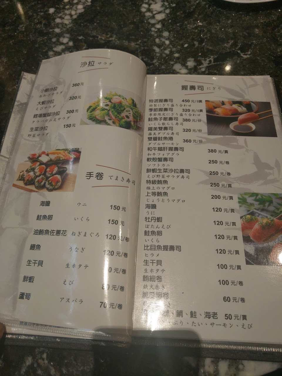 波士頓龍蝦, 比目魚握壽司 貫, 烤青甘魚下巴