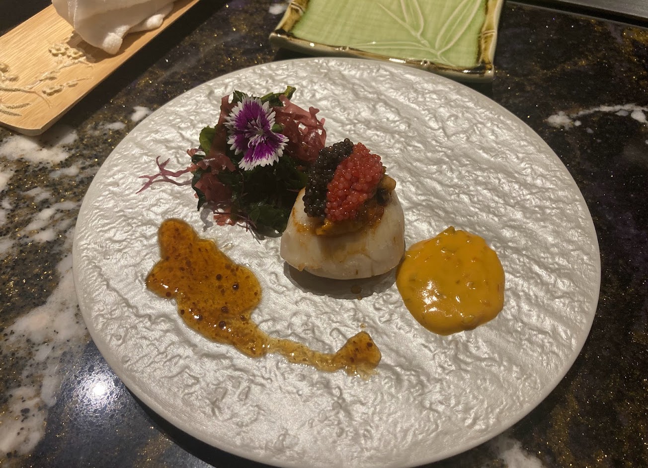 黑鮪魚油脂豐厚、油花均勻、味道鮮美,口感入口即化,吃完口齒留香,濃郁香氣久久不散,優質口感與味道,難怪會被稱作深海寶藏黑鑽石。橙黃色的馬糞海膽口感細膩,如奶油一樣細滑,味道濃郁鮮甜,清蒸波士頓龍蝦是吃出龍蝦最原始的口感,搭配蝦膏一起入口,真的是令人驚豔的創意。鮮甜的鱈場蟹也讓人印象深刻,新鮮的食材不用過多調味就能品嚐到原始美味。