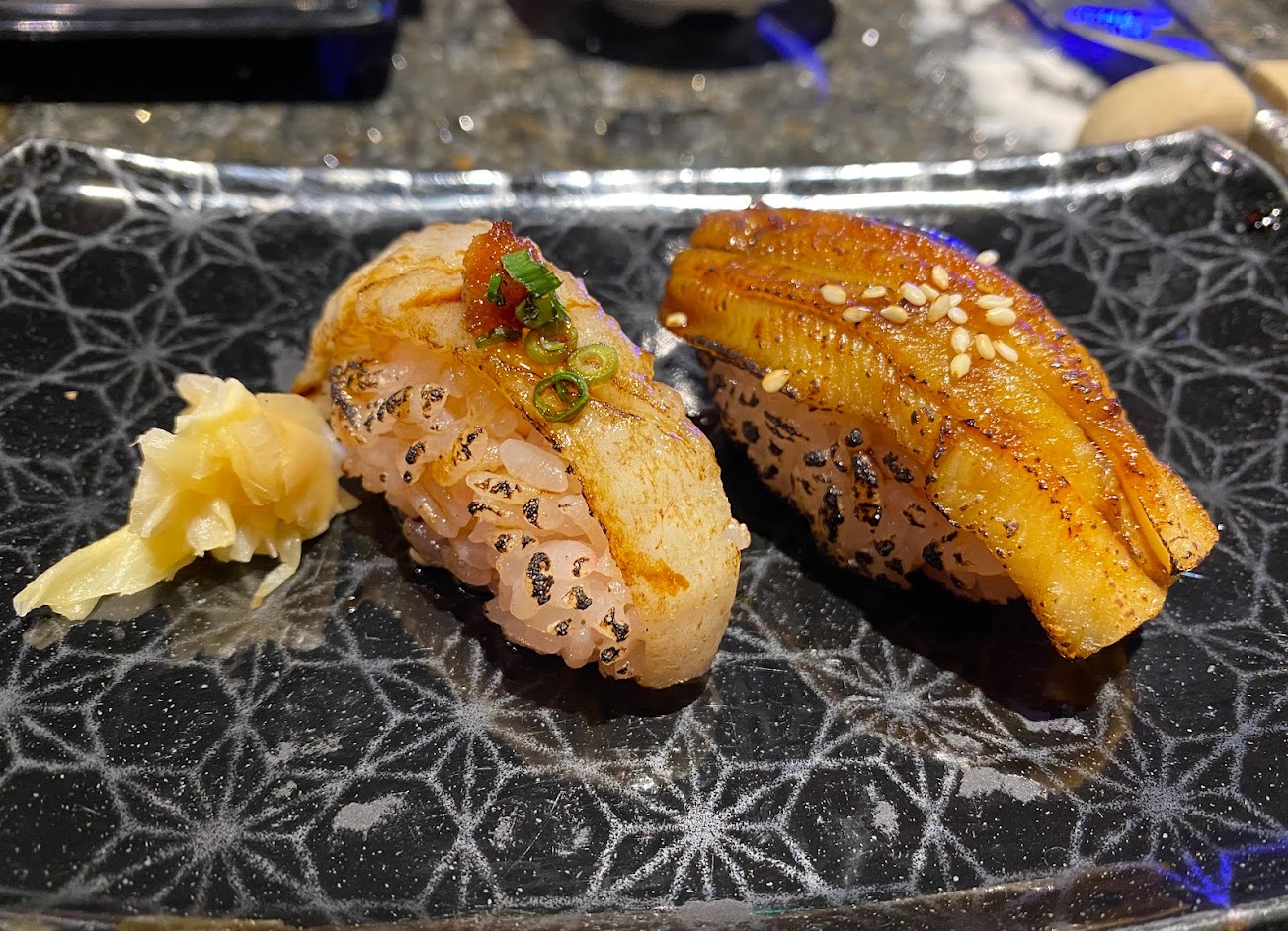 第五道握壽司,比目魚和鰻魚的組合和處理非常舒服,吃完也建議配口茶水清口,是非常有實力的一道。