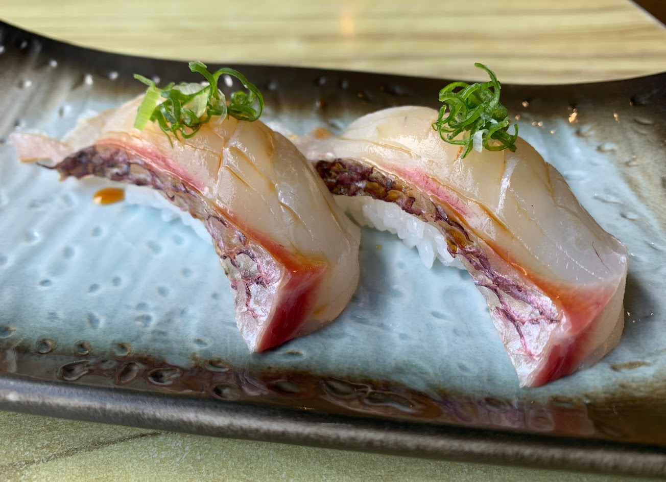 大推:炙燒比目魚鰭邊,入口即化的油脂,一定要加點。 推:炙燒海鱺和炙燒干貝,鮮嫩的口感帶點焦香味,可惜今天的海鱺到貨量不足,無法再加點,就再多吃兩貫炙燒干貝吧!