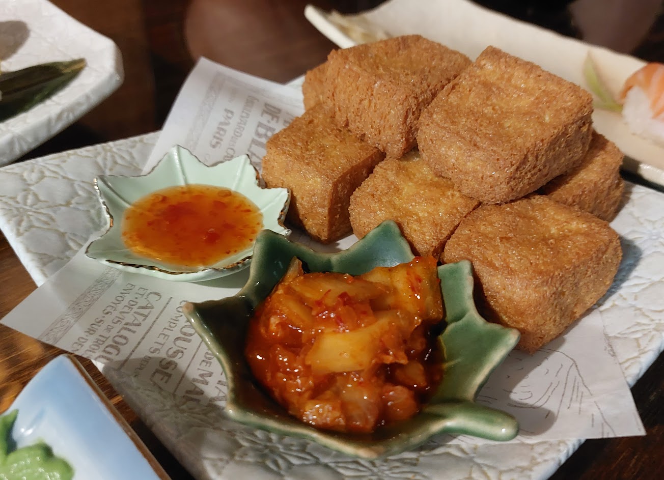 生魚片新鮮好吃,最愛鮮蚵壽司,肥美鮮甜!炸金磚有附上泰式酸辣醬及韓式泡菜可以搭配,蠻特別的。價位不貴,老闆娘態度很親切。