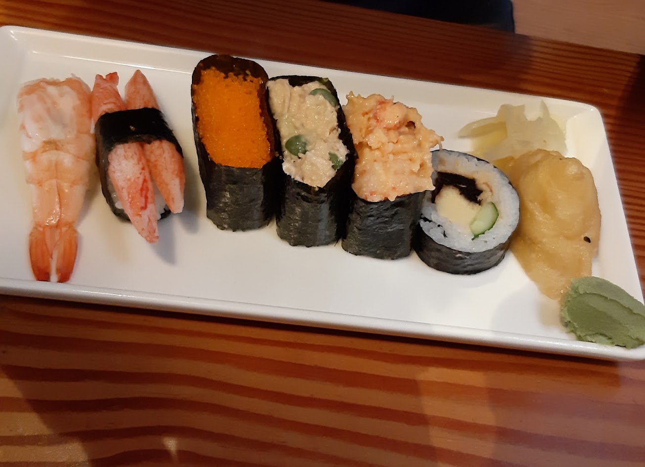從小時候就開始吃的壽司,非常好吃,味增湯也很很好喝,但豆皮的味道變了,口味偏淡。 在人少的時候你不用擔心叫不到服務生,服務也很周到,但有時候即便人很少,炙壽司卻不是熱的,沒有及時上菜,滿失望的。 人多的時候更不好叫到服務生,若座位較邊緣更是不容易,和以前的服務品質差滿多的,但整體而言還算不錯。