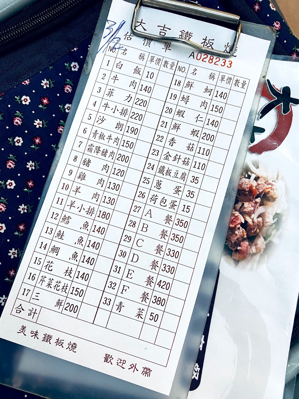 口味還不錯,煎炒完成的食物會置於座位前面的鐵板上讓顅客食用,不是用裝盤的,外帶價格比照內用,我覺得不划算。