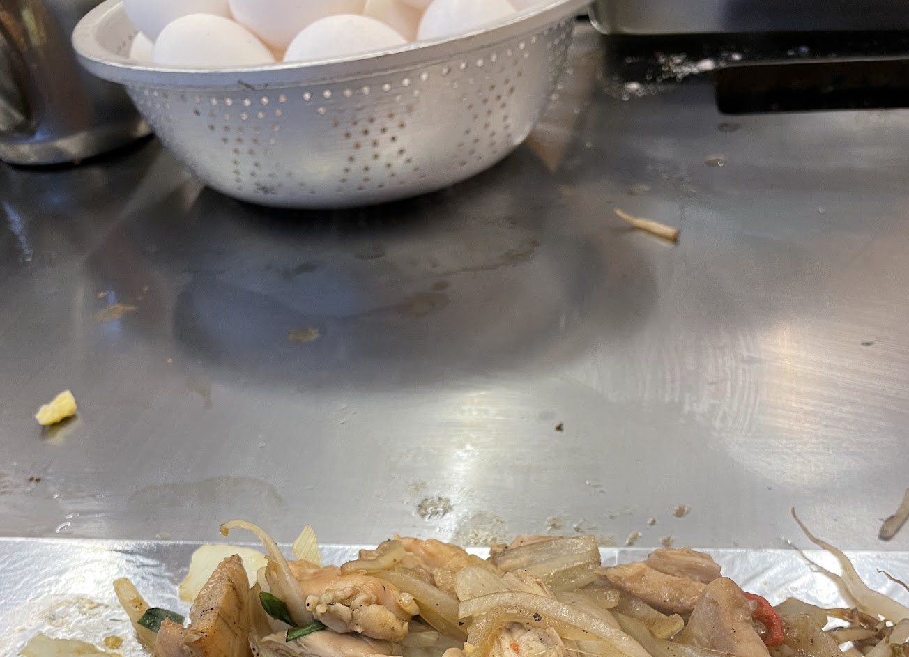 設有吧台座位的休閒餐廳,供應在大型鐵板上烹調的各式熱炒料理。