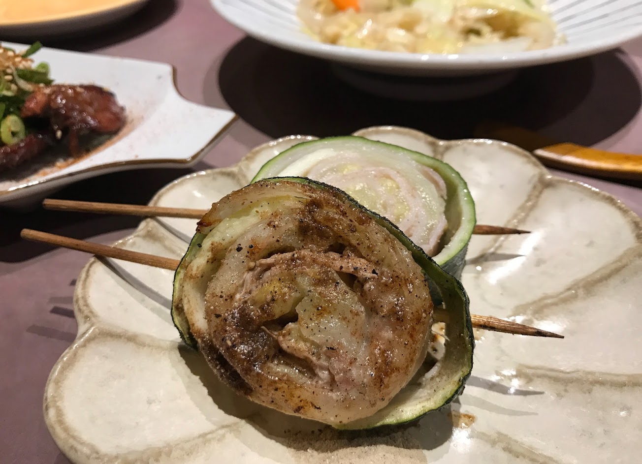 秘制烤雞心、廣島牡蠣、櫛瓜豬肉卷、炸豬肝佐韭菜醬等…都好吃,米飯Ok,附贈的關東煮清湯也夠誠意。