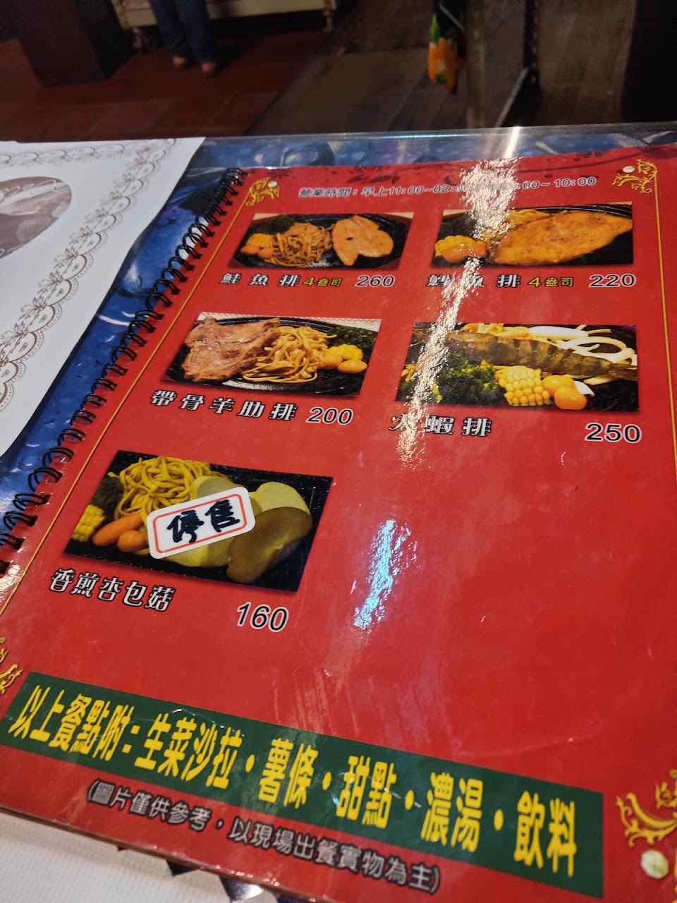每週大約吃三次,濃湯、紅茶喝到滿意-選擇一種套餐還有薯條&麵包擇一、生菜沙拉&水果也是擇一,便宜又好吃,豬排、牛排、魚排、花枝排、蝦排、小卷排⋯每客套餐150元,還有雞腿排、霸王雞腿排、羊排、松板豬、菲力豬、牛排款式更多⋯價格平價又實惠-即可享受~吹著冷氣自在吃的阿哈牛排是吃午餐、晚餐的好地方???